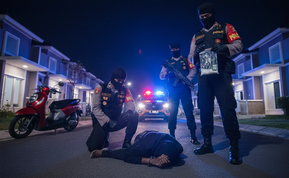 2. Pengembangan & Penangkapan Pemasok (Jumat, 23 Januari 2026) Berbekal keterangan Lukman, tim Unit Satu pimpinan Ipda Adit Fanji Purnomo melakukan pengembangan ke Perumahan Green Harmony Residence.